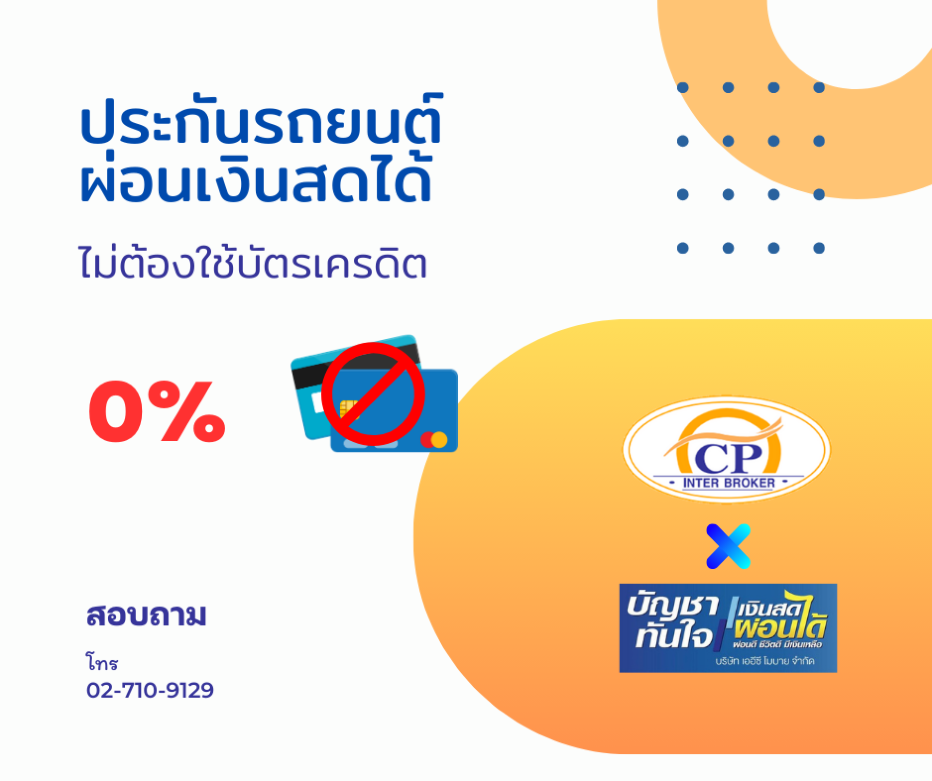 ซื้อประกันรถยนต์ ผ่อนเงินสดได้ ไม่ต้องใช้บัตรเครดิต