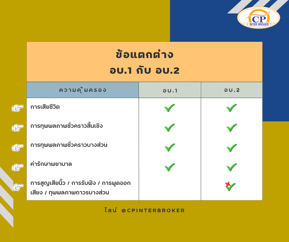 อธิบายง่ายๆ อบ.1 กับ อบ.2 ในประกันอุบัติเหตุต่างกันยังไง?