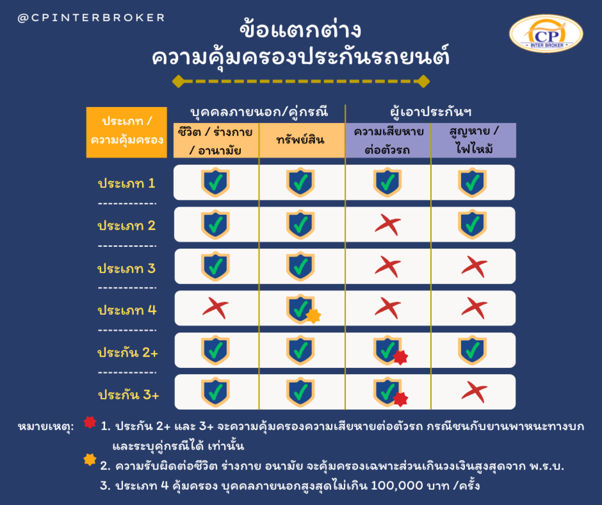 เท่านี้ก็น่าจะทำให้คุณสามารถแยกประกันภัยรถยนต์แต่ละประเภทออกได้บ้างแล้ว เพื่อใช้ประกอบการตัดสินใจ ว่าคุณเหมาะกับการทำประกันรถยนต์แบบใด หรือ จะให้ง่ายกว่านั้น ให้ ซี พี อินเตอร์ แนะนำเลย... 02-483-0789 หรือ แอดไลน์ @cpinter / คุยกับเราผ่านเฟสบุ๊ค